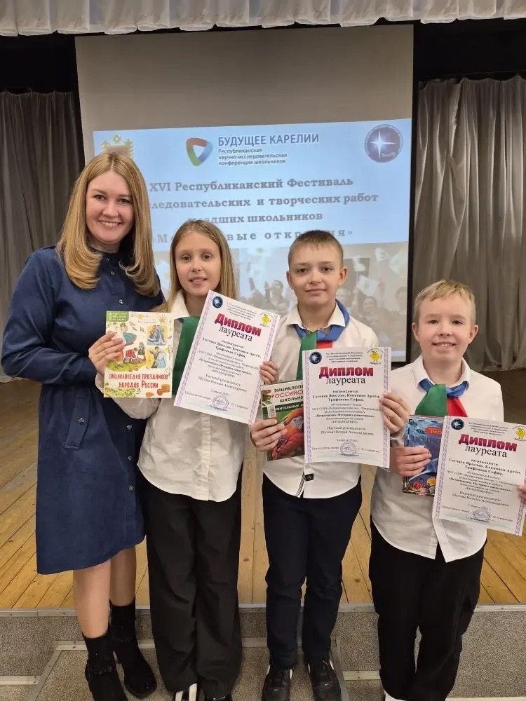 Наши юные исследователи — гордость школы! Наши четвероклассники — победители Республиканского фестиваля «Мои первые открытия»! На весенних каникулах ученики 4-х классов приняли участие в XVI Республиканском фестивале исследовательских и творческих работ младших школьников «Мои первые открытия». Юные исследователи представили свои проекты: • Ярослав Готчиев, Артём Кокконен и София Трифонова -«Петрозаводск. История в памятниках», руководитель Шутова Наталья Александровна; • Мириана Альбова - «Воспитай себе друга», руководитель – Ильина Надежда Викторовна. Выступления ребят произвели яркое впечатление на членов жюри и были отмечены высокой наградой — победой в фестивале! Поздравляем наших талантливых исследователей и их научных руководителей с отличным результатом! Желаем новых открытий, вдохновения и ярких побед в будущих проектах!